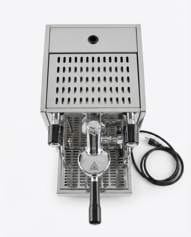 La cafetera con pulsante manual está diseñada para preparar café espresso de forma precisa y continua, ideal para negocios que buscan control total en cada extracción; cuenta con depósito de agua de 3 litros, caldera de 1.3 litros, grupo termo sifónico de erogación manual y bomba de vibración con protección térmica