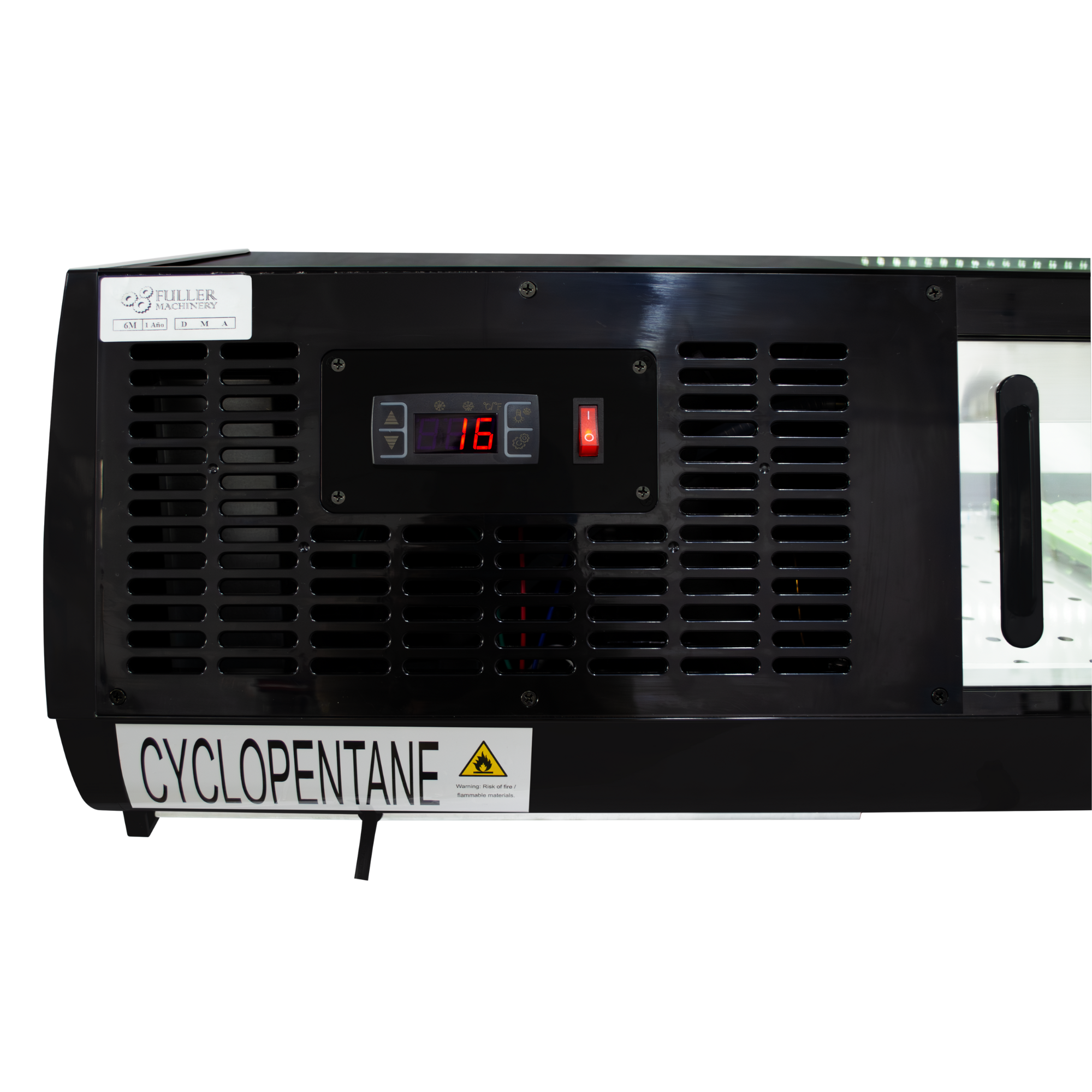 Gracias a su sistema de refrigeración por compresor, mantiene una temperatura estable entre 2°C y 12°C, ideal para conservar sushi, rolls, sashimi y otros productos delicados sin comprometer su calidad.