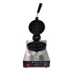 Wafflera tradicional de uso comercial con molde de 18.5 cm y 4 secciones. Fabricada en acero inoxidable con placas de alta conductividad, ofrece cocción uniforme, control de temperatura.